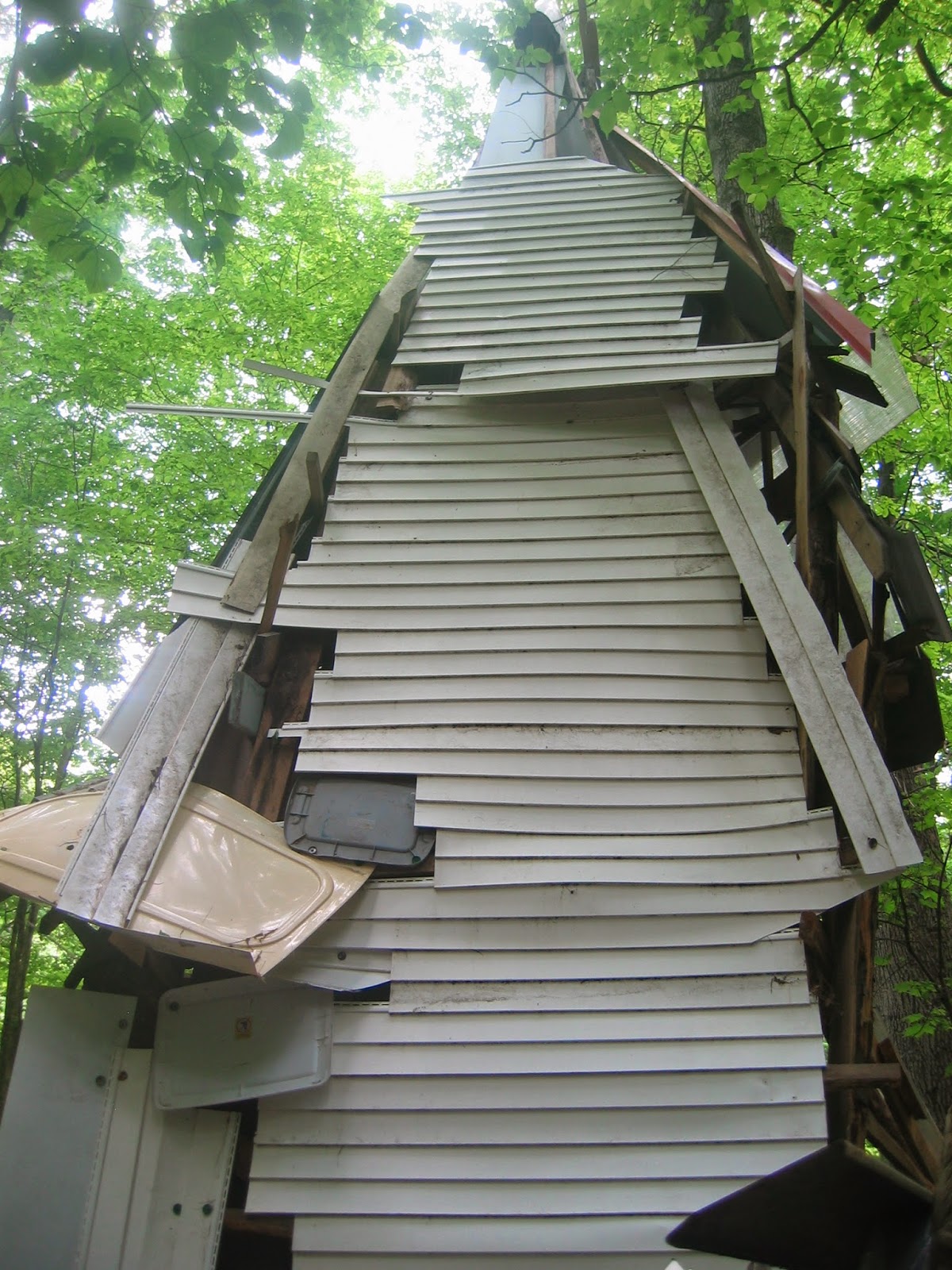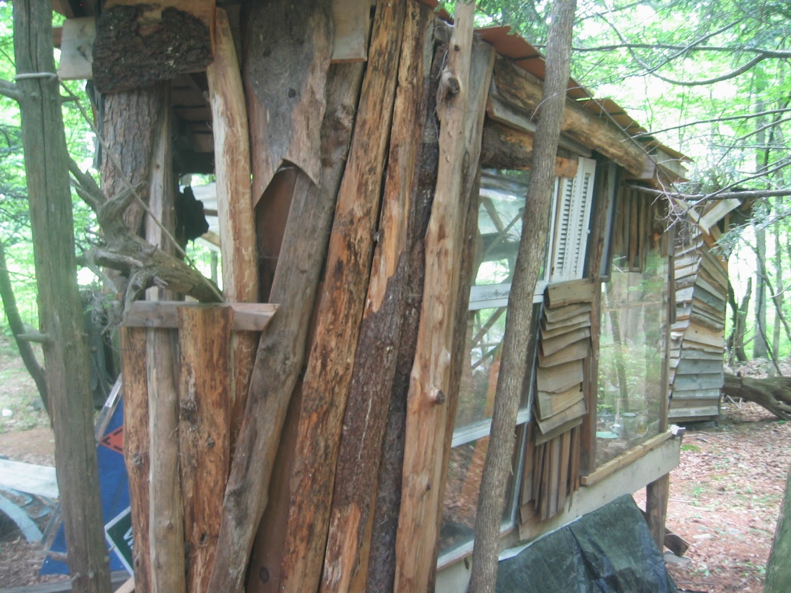 Next time you need a toolshed, sauna, shower house, sugar shack, chicken coop, or other small building, you might construct it from recycled materials. You would save money, protect the environment, and exercise your creativity. You might even end up making a split-level cabin, as artist and builder Matt Bua has done at bHome, the wooded property in Greene County that is part art studio, part construction laboratory.